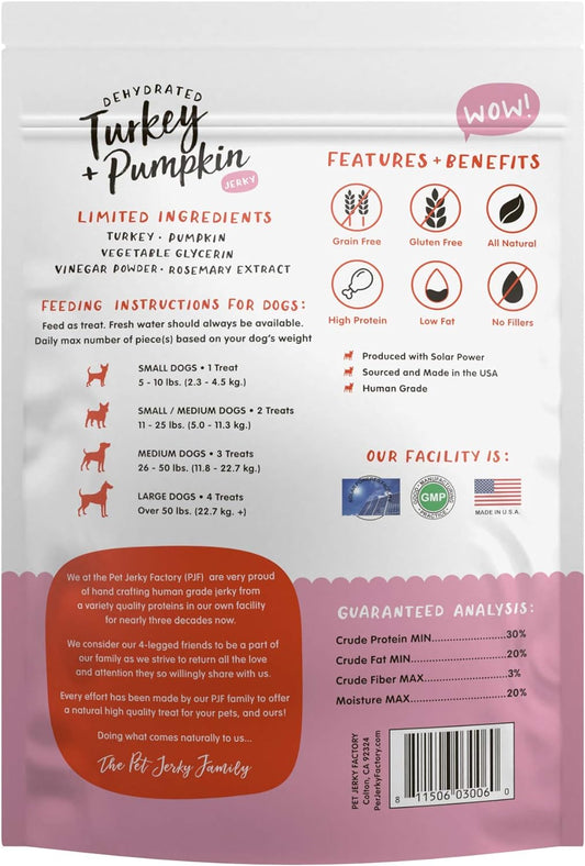 Premium Turkey & Pumpkin 5 Oz. Dog Jerky Treats | 100% Human Grade | USA Made | High Protein ...